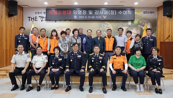 이날 행사에는 퇴임하는 의용소방대원에게 지난 기간 동안의 노고에 대한 감사의 마음이 담긴 감사패(장)을 수여하고, 새로 임명된 의용소방대 대장에게 사기진작 및 자긍심 고취를 위한 임명장을 전달하였다.