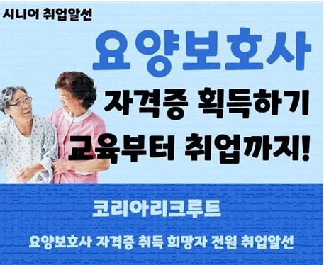 코리아리크루트는 요양보호사로 취업을 희망하는 시니어 요양보호사 자격증 취득자를 대규모 모집해 전국 요양병원을 중심으로 재취업을 적극 추진하고 있으며, 시니어 요양보호사 취업알선을 위해 지자체 및 관련 기관 등에서 지정한 요양보호사 교육센터와 협약 체결을 확대하고 있다.
