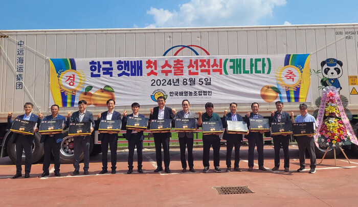 진주시는 5일 한국배영농조합법인(대표 김건수)에서 진주산 햇배 27톤을 캐나다 벤쿠버와 토론토에 첫 수출하는 선적식을 가졌다고 전했다.