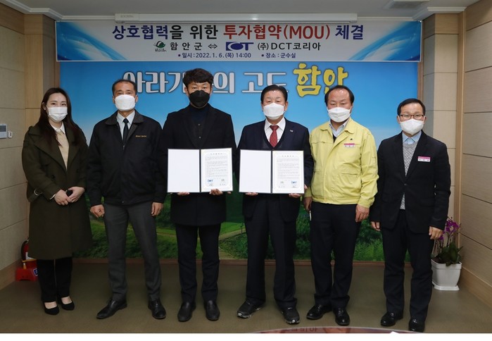 함안군은 6일 오후 2시 군수실에서 ㈜DCT코리아와 64억 원 규모의 장엄농공단지 내 입주를 위한 투자협약(MOU)을 체결했다.