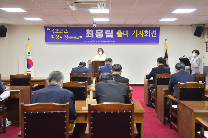 목포 최초 여성 시장후보인 최홍림 의원이 22일 목포시장 출마 기자회견을 가졌다.