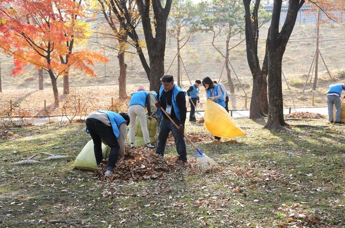 이런 취지에 공감해 자원한 참가자들은 평사원부터 임원까지 다양했다. 각자 평소 하는 일은 다르지만 이날만큼은 한마음으로 5시간가량 관람로 주변 정비와 낙엽긁기 등을 함께 했다.