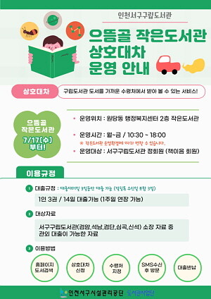 ▲ 으뜸골 작은도서관 상호대차 서비스 안내 포스터 (사진제공=인천서구시설관리공단) |