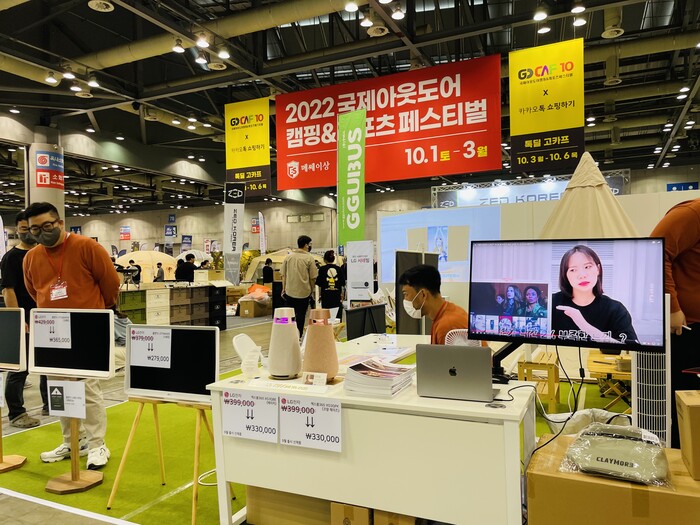 LG전자 부스에서는 룸앤티비, 스탠바이미 GO를 만날 수 있다. 특히 ‘LG 스탠바이미 GO’는 화면, 스탠드, 스피커 등 모두 탑재한 일체형 디자인의 제품으로 레디백 스타일의 여행 가방처럼 케이스 상단에 손잡이를 적용해 편의성을 키운 제품이다. LG전자 관계자는 "LG 스탠바이미 GO를 오프라인 행사인 고카프에서 선보일 수 있게 되었다"며 "전시 기간 동안 많은 분들과 함께 할 수 있는 프로모션을 제공할 계획이다"고 말했다.