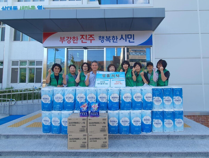 진주시 상대동 새마을부녀회(회장 손혜숙)는 지난 29일 어려운 이웃을 돕기 위해 50만 원 상당의 세제와 화장지를 상대동행정복지센터에 기부했다.