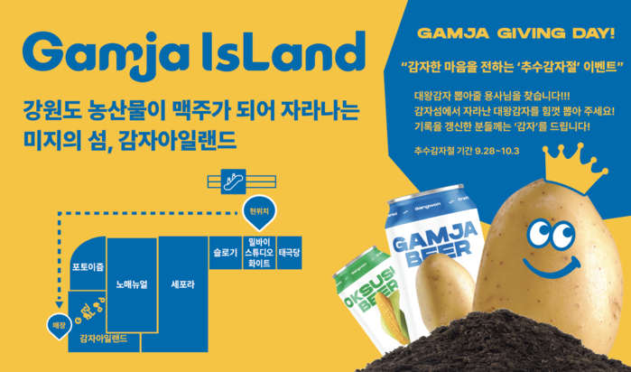 이번 이벤트전은 기존 운영중인 지하 1층 매장과는 별개로 운영되며, 감자아일랜드의 메인 맥주 5종(감자맥주, 옥수수맥주, 단팥맥주, 쥬씨애플, 말랑피치)을 감자뽑기, 감자화폐 교환 등 이색적인 게임을 통해 할인된 가격으로 구매할 수 있는 혜택을 제공한다.