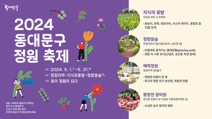 [시민일보 = 이대우 기자] 서울 동대문구(구청장 이필형)는 '2024 동대문구 정원 축제'를 5월 내내 진행한다고 3일 밝혔다.