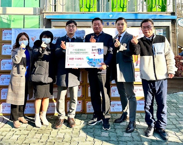다온엠엔씨는 스마트무인화기기 시장의 폭을 넓히기 위해 주도적으로 움직이고, 중소기업발전지원센터로써 사회적 기업의 역할을 하고있는 곳으로 최근에는 서대문구 북가좌동의 경로당, 공동가정시설, 저소득 중장년 1인 가구 등의 취약계층들을 위해 라면을 기부하며 희망온돌 따듯한 겨울나기 사업에 동참했다.