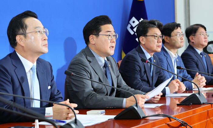 박찬대 원내대표는 이날 오전 국회 본관에서 열린 당 원내대책회의에서 "(한 대표가)당 대표 선거 때는 공수처(고위공직자범죄수사처) 수사 종결 여부와 무관하게 제3자 추천 특검법안을 발의하겠다 해놓고 어제는 '수사 후에 하는 것'이라고 말을 바꿨다"며 "이러다 '내가 언제 특검법 발의한다고 했느냐'고 할 것 같다"고 비판했다.
