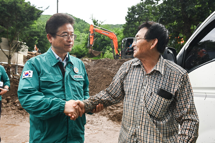 이날 현장을 찾은 이 지사는 피해 상황을 점검하고 “응급 복구를 최대한 빨리 조치해 2차 피해를 막고, 토사 유출 및 하천 제방이 유실된 곳에 안전사고가 일어나지 않도록 즉각적인 대응과 안전조치를 다하라”고 지시했다.