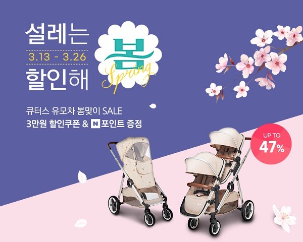 브랜드 관계자는 “본격적인 봄 시즌에 접어들면서 나들이 필수템인 유모차를 고민중인 분들이 많아지고 있다”고 말하며, “큐터스 봄맞이 특가에서 아이를 위한 유모차를 준비하셔서 편안한 봄 나들이 즐기시길 바란다”고 전했다.
