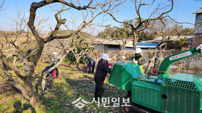 파쇄지원단은 과수 잔가지, 고춧대 같은 영농부산물을 파쇄해 농가의 일손을 돕고, 불법소각 예방, 미세먼지 저감 등을 동시에 이루는 사업이다.