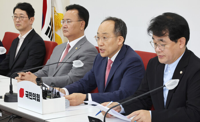 추경호 원내대표도 이날 오전 국회에서 열린 비상대책위원회의에서 "민주당은 오로지 이 전 대표 살리기와 방탄, 탄핵 정국 조성을 위해 거대 다수당 권력으로 행정ㆍ사법ㆍ입법ㆍ언론 장악을 시도하고 있다"며 "이제는 대통령 탄핵도 서슴지 않고 얘기하는데, 이성을 잃은 민주당의 국기문란 행위로 대한민국 헌정질서가 유린되고 있다"고 날을 세웠다.