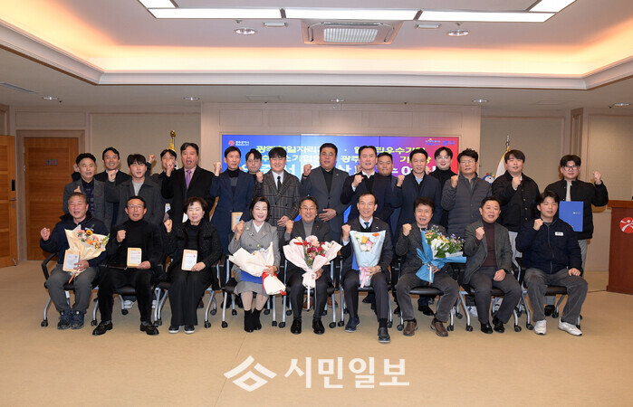 또, 광주시는 기술력이 우수하고 고용창출 등 지역 경제발전에 기여한 중소기업인 5명(강철원 ㈜유투 대표, 김춘애 ㈜승강 대표, 마상동 ㈜다원물산 대표, 김순곤 ㈜천복금형 대표, 김범안 ㈜195에프앤비 대표)을 우수중소기업인으로 선정했다.