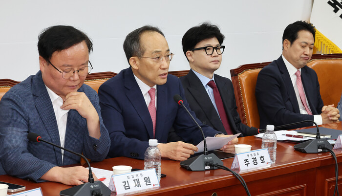 검사 출신 국민의힘 김재원 최고위원도 문 전 대통령에 대한 2억3000만원 가량의 뇌물죄 가능성을 두고 수사가 진행되고 있다고 언급하면서 "문 전 대통령에 대해 문다혜씨와 함께 '경제공동체' 법리를 적용해서 수사하고 있다고 알고 있다"고 했다.