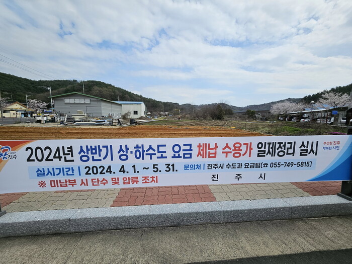 진주시는 깨끗한 수돗물 공급 재원확보 및 공기업 재정건전성을 위하여 ‘2024년 상반기 상‧하수도 요금 체납 수용가 일제정리’를 실시한다.