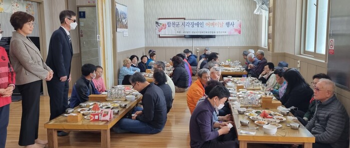 박필숙 주민복지과장은 시각장애인 어르신들에게 “장애로 생활에 많은 제약을 받는 어르신들이 오늘 만큼은 모든 근심 걱정을 떨쳐내고 행복한 하루를 보내셨으면 좋겠다”고 인사를 전했다.