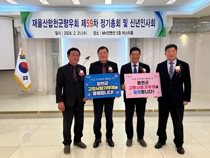 또한 이날 신년회에서 재울산합천향우회는 ‘마음을 함께하는 행복한 이음, 합천군 고향사랑기부제를 응원합니다’라는 메시지로 제도 활성화를 기원하고 힘을 보태고자 응원을 통한 뜨거운 관심을 표했다.