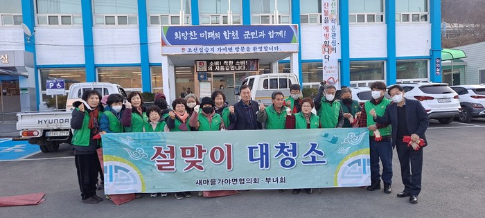 임채영 가야면장은 “주민들에게 항상 봉사하고 쌀쌀해지는 시기에 누구보다 먼저 설맞이 대청소를 실시한 새마을협의회 및 부녀회 회원분들에게 감사의 말씀을 전한다”고 말했다.