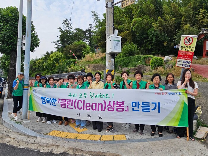 진주시 상봉동 새마을부녀회(회장 이영숙)는 지난 24일 서봉지 앞 봉황거리에서 회원 15여 명이 참여한 가운데 벽화 청소 활동을 실시했다.