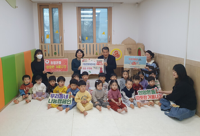 이번 성금은 구립 한빛어린이집에서 ‘사랑의 저금통’ 행사를 통해 마련한 수익금으로, 어린이집 교사, 원아, 학부모들이 어려운 이웃을 위해 기부에 동참했다.