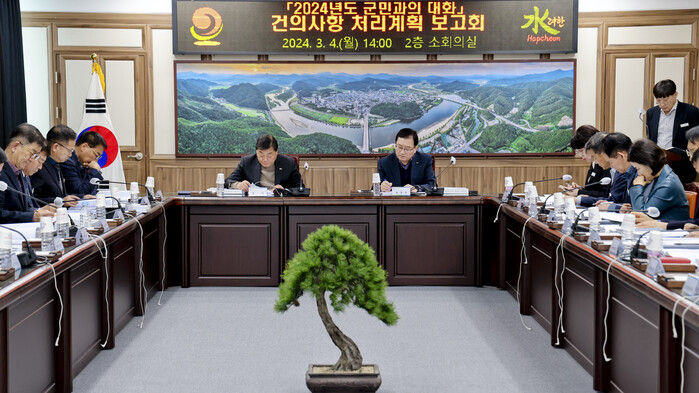합천군은 건의자에게 처리계획을 상세히 설명해 행정에 대한 불신을 초래하는 일이 없도록 한다는 방침이다. 이를 위해 예산 확보를 통해 연차적으로 진행할 부분과 중장기 검토 등이 필요한 부분 등에 대해 그 사유와 사업 시기를 설명해 군민과의 소통과 군민 만족 행정을 실현한다는 계획이다.