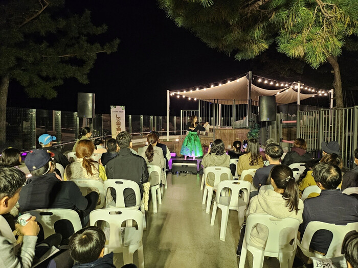 시는 진양호 노을이 지는 저녁 시간 한눈에 보이는 아름다운 전망 속에서 목관 앙상블 음악 연주를 들으며 힐링할 수 있는 시간을 마련했다. MBTI 캐릭터 소개를 시작으로 다채로운 목관악기와 피아노가 어우러져 감미로운 선율을 즐길 수 있는 클래식 음악, 비틀즈, 이선희의 ‘인연’ 등 공연을 준비했다.