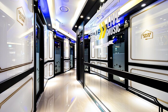 TJ 최신 반주기 및 세븐스타가 자랑하는 최고의 음향시스템이 도입되었으며, 모든 룸에 무선 마이크, 핸드폰 충전기 구비하여 고객 만족도와 편의성을 모두 높였다.