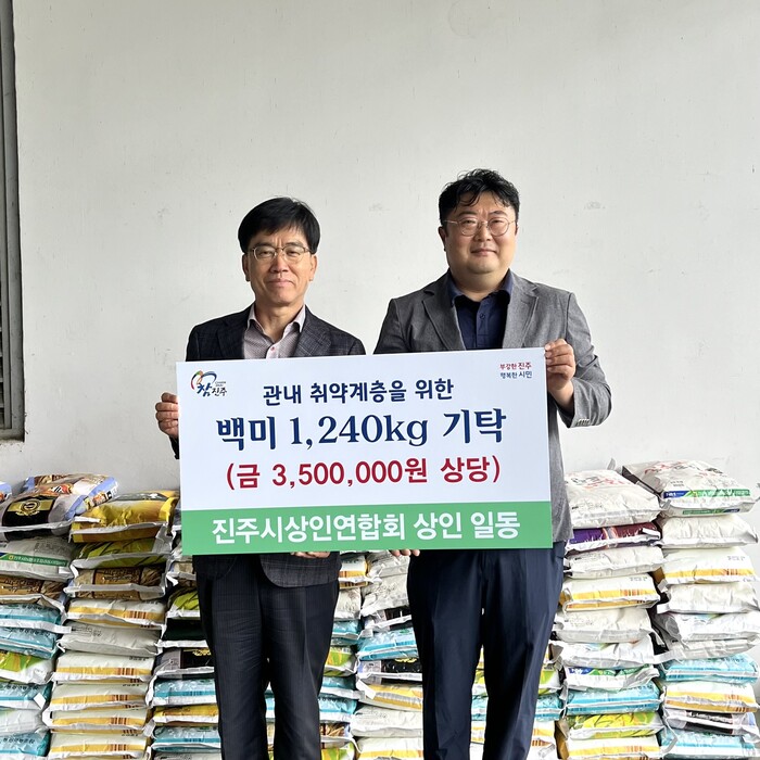 진주시 상인연합회(회장 홍혁)는 29일 진주시종합경기장에서 회장 이·취임식에 축하 화환 대신 기부 받은 사랑의 쌀 1240kg(10kg 124포, 환가액 350만 원 상당)를 지역의 어려운 이웃에게 전달해 달라며 진주시복지재단(이사장 이성갑)에 기탁했다.