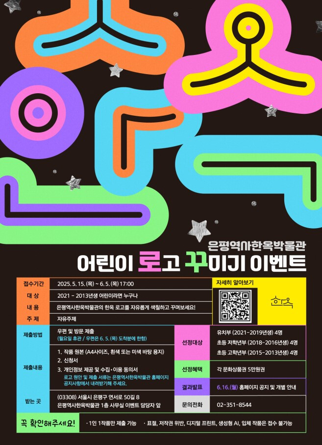 참가 방법은 박물관 누리집에 게시된 꾸미기용 로고 원안을 내려받기한 후 출력해 꾸미면 된다. 로고는 흰색 또는 미색의 에이포(A4)용지에 출력해야 하며 입체 작품, 생성형 AI로 창작한 작품은 참여할 수 없다. 접수 방법은 작품 원본과 함께 신청서 등을 지참해 박물관을 방문하거나 작품과 서류를 우편으로 제출하면 된다.
