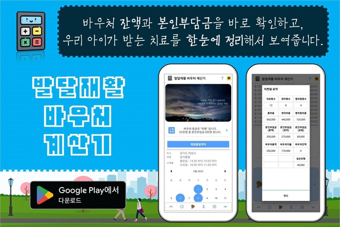 발달 재화 바우처 계산기 APP은 실제로 발달 장애 아동을 둔 허범웅 개발자가 직접 개발했다. 본인의 아이가 발달장애를 갖고 태어났기 때문에 더더욱 이러한 지원이 절실히 필요한 부모들의 아픔을 공감하게 되었으며 이러한 동기로 개발을 이어가 계산기 기능과 재활 치료 일기 기능을 포함해 소아 장애에 대한 정보를 통합하여 포털화 하는 목표를 갖게 되었다고 한다.