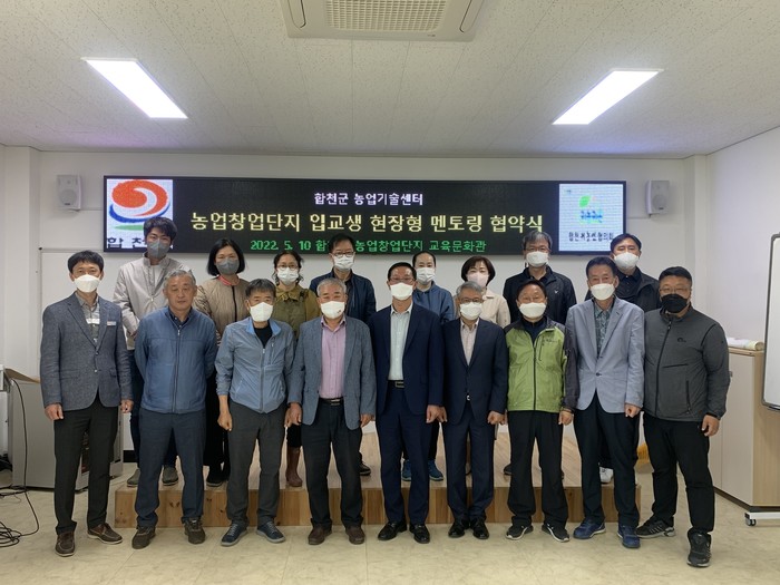 이번 행사는 영농 현장의 다양한 경험을 가지고 있는 퇴직한 지도직 공무원으로 구성된 멘토 6명과 22년 합천군 농업창업단지 입교생(멘티)12명이 참석해 협약식을 가졌다.