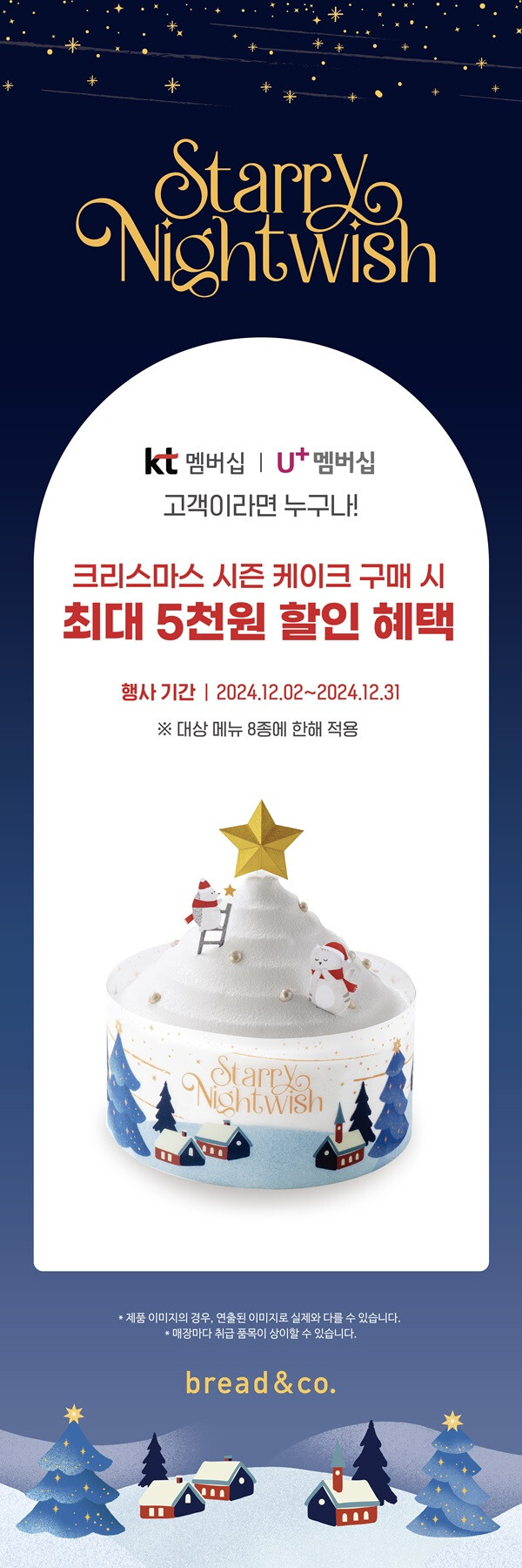 브레댄코의 ‘달달혜택’ 프로모션은 KT 멤버십 전 고객을 대상으로 진행되며 시즌 케이크 구매 시 5천원을 할인해주는 제휴 행사로 KT멤버십 앱을 통해 다운로드 가능, 12월 31일까지 사용 가능하다.