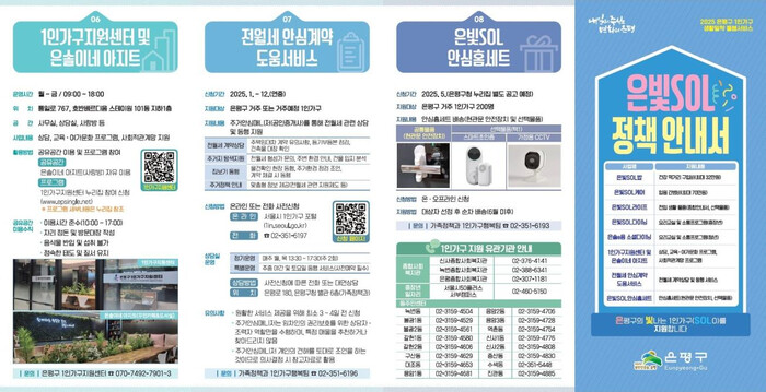 세부적으로는 은빛SOL 서비스, 소셜다이닝 프로그램, 1인가구지원센터 운영 등 은평구 특화 사업과 함께 여성안심택배함, 은빛SOL안심홈세트, 전월세 안심계약 도움서비스 등 생활밀착형 돌봄사업이 추진된다.