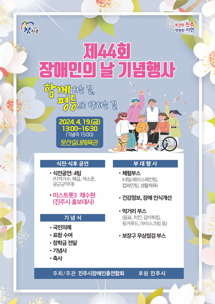 진주시는 오는 19일 오후 1시 문산실내체육관에서 ‘제44회 장애인의 날 기념행사’를 개최한다.