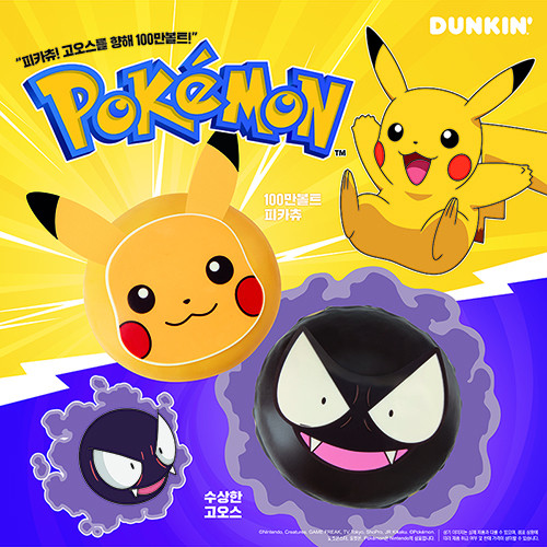 이달 신제품 도넛으로는 △바나나향 초코 코팅을 입힌 도넛 위에 피카츄 얼굴을 그려낸 초코 사인판을 올린 뒤, 피카츄 귀 모양의 픽을 꽂아 귀여운 피카츄 페이스를 그대로 구현한 ‘100만볼트 피카츄’, △설향 딸기 필링을 듬뿍 담은 쉘도넛에 달콤한 초코 코팅을 입힌 뒤 고오스 얼굴이 담긴 초코 사인판을 올려 고오스 페이스를 그대로 구현한 ‘수상한 고오스’ 등 총 2종으로 구성되었다.
