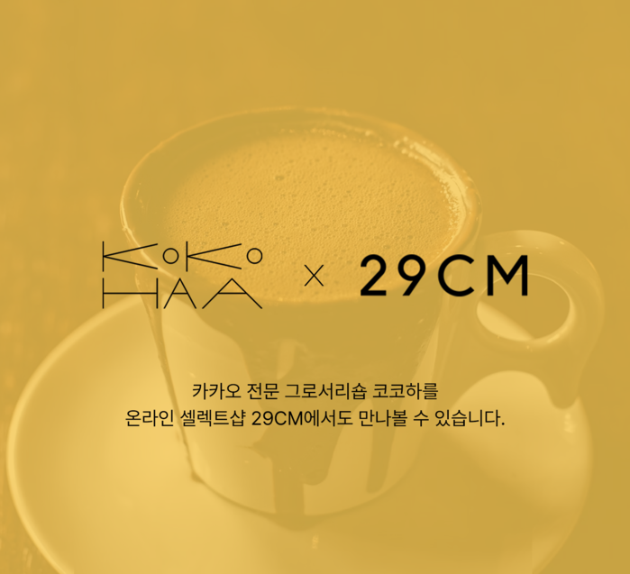 코코하는 이번 29CM 입점을 통해 코코하의 대표 제품들을 선보였다. 과테말라 생카카오 100%를 활용한 ▲ 카카오 카라멜 ▲ 실키초코 ▲ 카카오칩 ▲ 쇼콜라틀 카카오티 ▲ 쇼콜라틀 핫초코 ▲ 카카오 라떼 베이스부터, 고품질의 신선한 견과를 직접 로스팅 하여 만든 ▲ 아몬드 초코볼 ▲ 헤이즐넛 초코볼 ▲ 아몬드 넛버터 ▲ 카카오&아몬드 넛버터 ▲ 헤이즐넛 넛버터까지 다양하다.