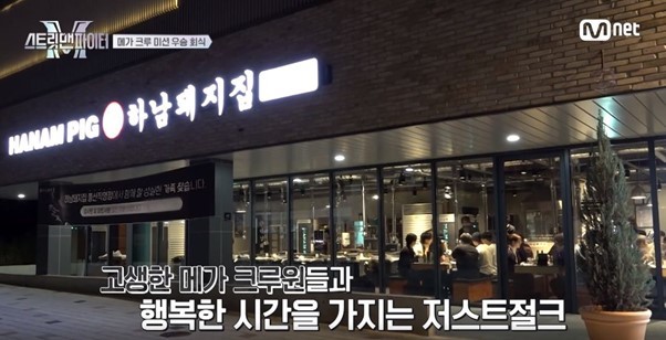 방송에서 메가크루 미션 우승팀인 저스크절크 멤버들과 미션에 참가한 헬퍼 댄서들이 하남돼지집에서 회식을 즐기는 장면이 방송됐다.