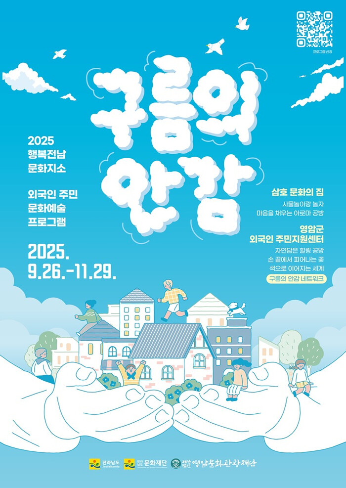 이번 프로젝트에서는 영암 지역의 문화기획자들과 함께 외국인 주민들을 위한 다양한 문화예술 프로그램을 기획해 진행한다. 세부 프로그램은 다음과 같다. ‘Class A: 손 끝에서 피어나는 꽃(요리수업/황인숙 강사)’, ‘Class B: 색으로 이어지는 세계(미술수업/이귀님 강사)’, ‘Class C: 사물놀이랑 놀자(음악수업/임상욱 강사)’, ‘Class D: 자연을 담은 힐링 공방(공예수업/배유진 강사)’, ‘Class E: 마음을 채우는 아로마 공방(공예수업/김효진 강사)’ 그리고 오는 11월 29일(토) 오후3시 영암군외국인주민지원센터에서 “구름의 안감 네트워크”의 마무리 행사를 개최할 예정이다.