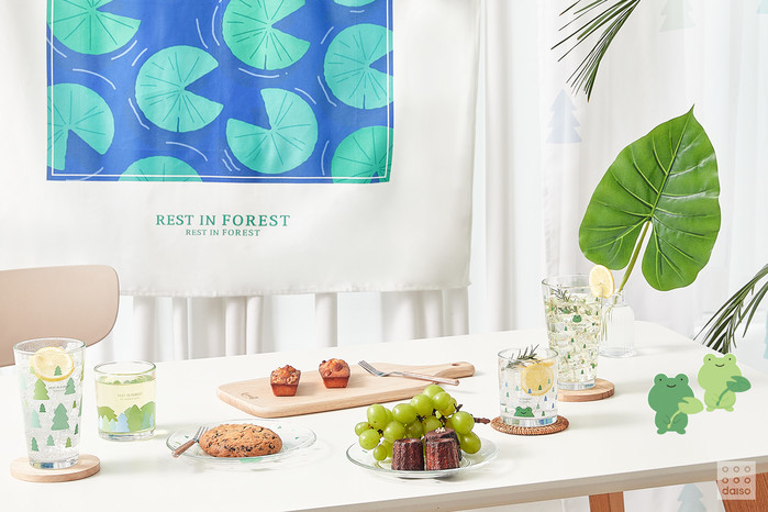 이 밖에도 식기류와 인형 등을 판매한다. ‘초록휴식 유리컵’과 ‘초록휴식 롱 유리컵’은 투명한 유리 재질에 산뜻한 느낌의 디자인을 넣었고, ‘청개구리 친구들 인형’은 연잎 모자를 쓴 인형, 연잎을 들고 있는 인형 등 다양한 디자인의 인형 상품으로 구성됐다.