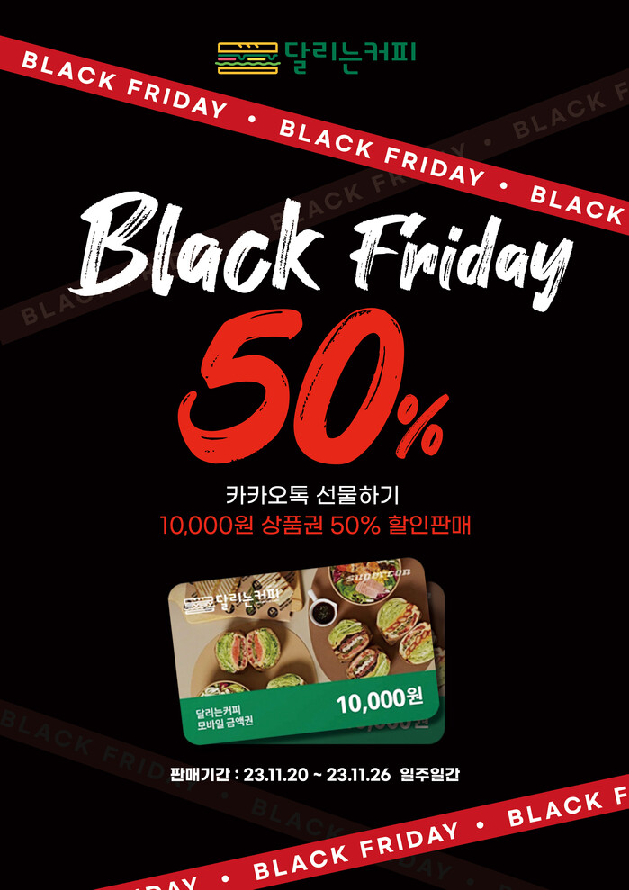 할인 행사 기간은 11월 20일부터 11월 27일까지 7일간 진행되며, 카카오톡 선물하기에서 ‘달리는커피’를 검색하면 자세한 내용을 확인할 수 있다.