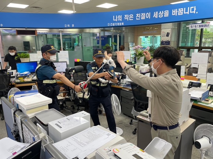 이번 훈련은 군청 및 읍·면 민원공무원에 대한 폭언·폭행 등 특이민원 발생에 대비하여 안전한 근무환경을 조성하고 방문 민원인의 피해를 최소화하기 위해 진행했다.
