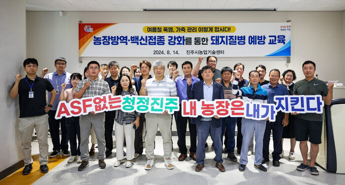 진주시는 14일 진주시농업기술센터 교육장에서 양돈농가와 관계 공무원 등 33명을 대상으로 농가 방역·백신접종 관리 강화를 위한‘돼지질병 예방 교육’을 실시했다.