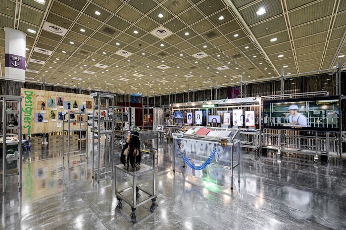 전시 폐기물을 최소화 하기 위해 재사용 테이블, 폐점 매장의 가구 등을 활용해 지속가능성을 더했다.