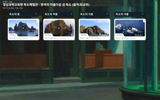 경남교육청은 지난해 10월 25일 ‘독도의 날’을 계기로 독도 교육 주간을 운영할 때 교사들이 학생 참여·체험 중심의 독도 교육을 진행하여 메타버스 독도체험관을 성공적으로 시험 운영했다.