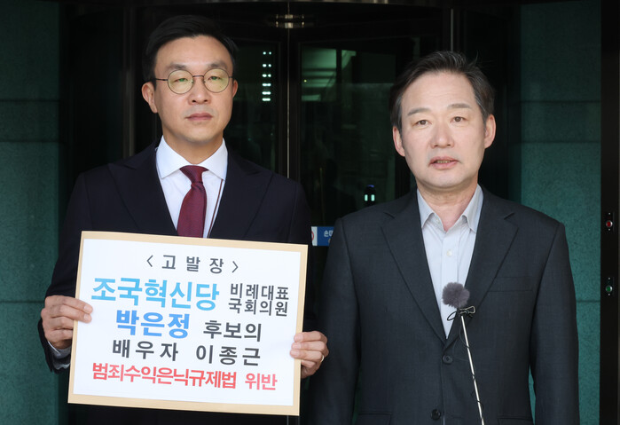 한편 이날 오전 신지호 위원장과 최지우 법률자문위원은 서울 서초구 대검찰청 종합민원실을 찾아 조국혁신당 비례대표 1번 박은정 후보 배우자 이종근 전 검사장의 다단계업체 수임 관련 고발장을 제출했다.