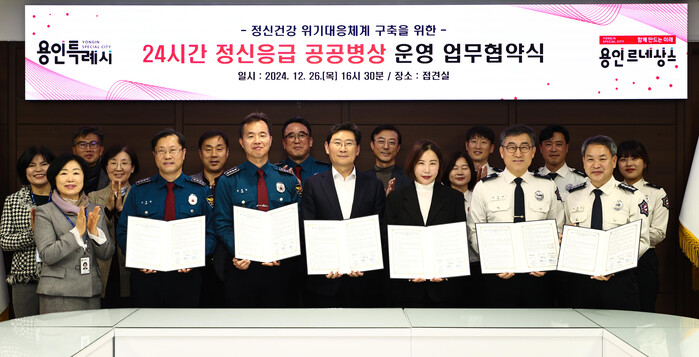 [용인=오왕석 기자] 용인특례시(시장 이상일)는 26일 경찰과 소방, 지역 내 의료기관과 함께 시민의 안전과 정신건강 위기대응 체계를 구축하기 위한 ‘24시간 정신응급 공공병상’ 운영 업무협약을 체결했다고 27일 밝혔다.