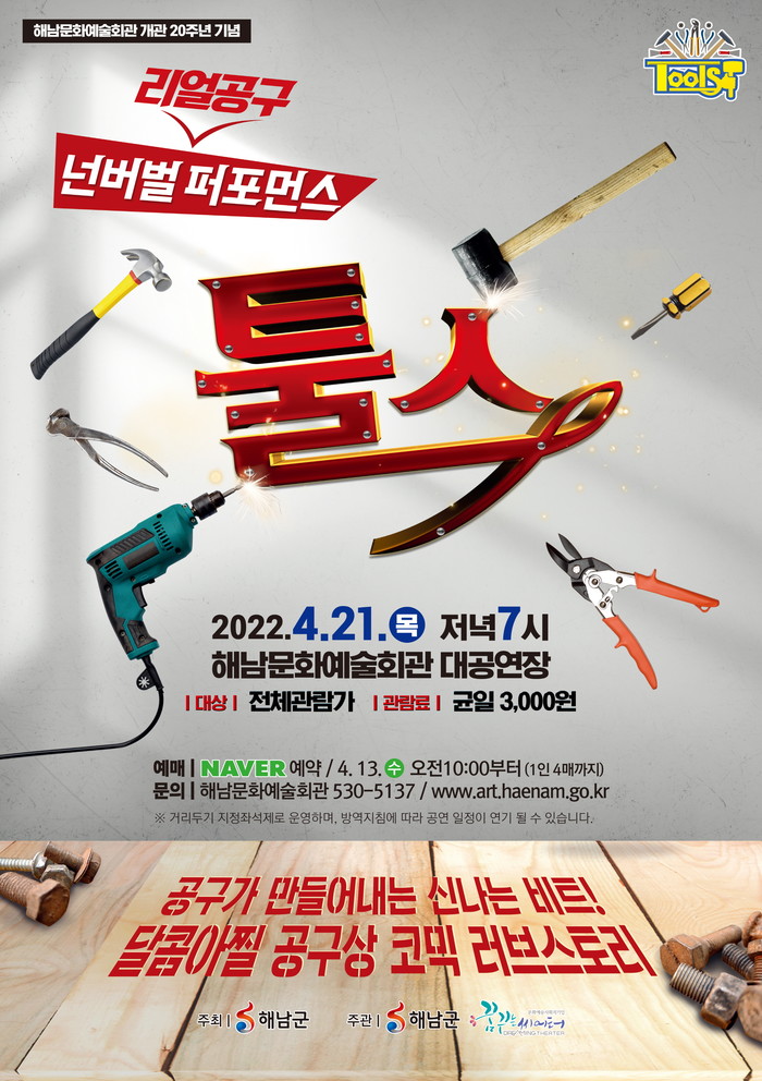| ▲ 해남군문화예술회관 개관 20주년 기념 넌버벌 포퍼먼스 툴스 공연 포스터 / 해남군 제공 |