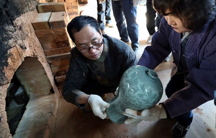 [강진=정찬남 기자] ‘흙 사람 그리고 불’이란 주제로 제53회 강진청자축제가 강진군 대구면 청자촌 일원에서 열리고 있는 가운데 23일 고려청자박물관 제2호 가마에서 48시간 동안 구워낸 청자를 꺼내고 있는 모습