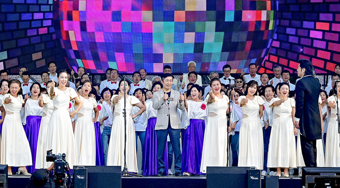 | ▲ 전성수 구청장(가운데)이 서리풀 합창제에 함께하는 모습. (사진=서초구청 제공) |